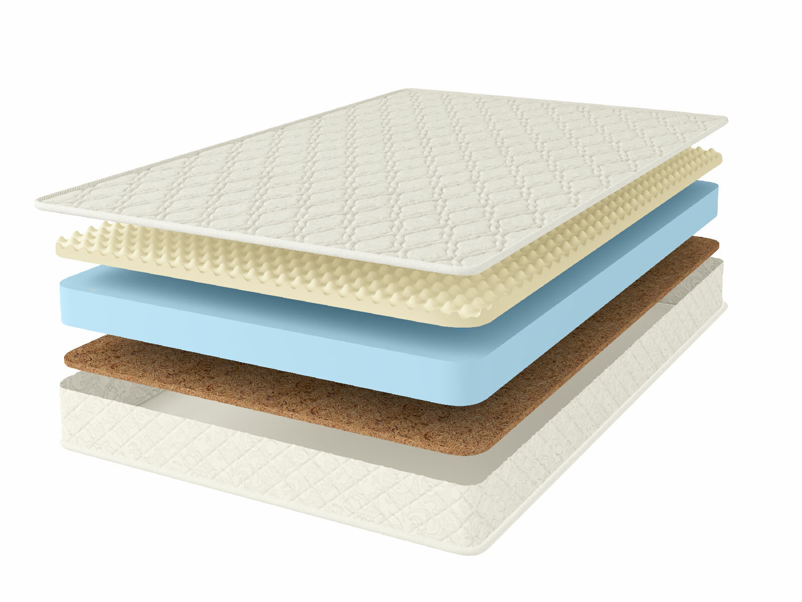 Чехол матраса из хлопкового жаккарда, который обладает высокой износостойкостью, простеган на Холлконе и имеет очень длительный срок службы. Ткань чехла может немного отличаться по рисунку, а также по оттенку цвета, это не влияет на ее свойства и качество.