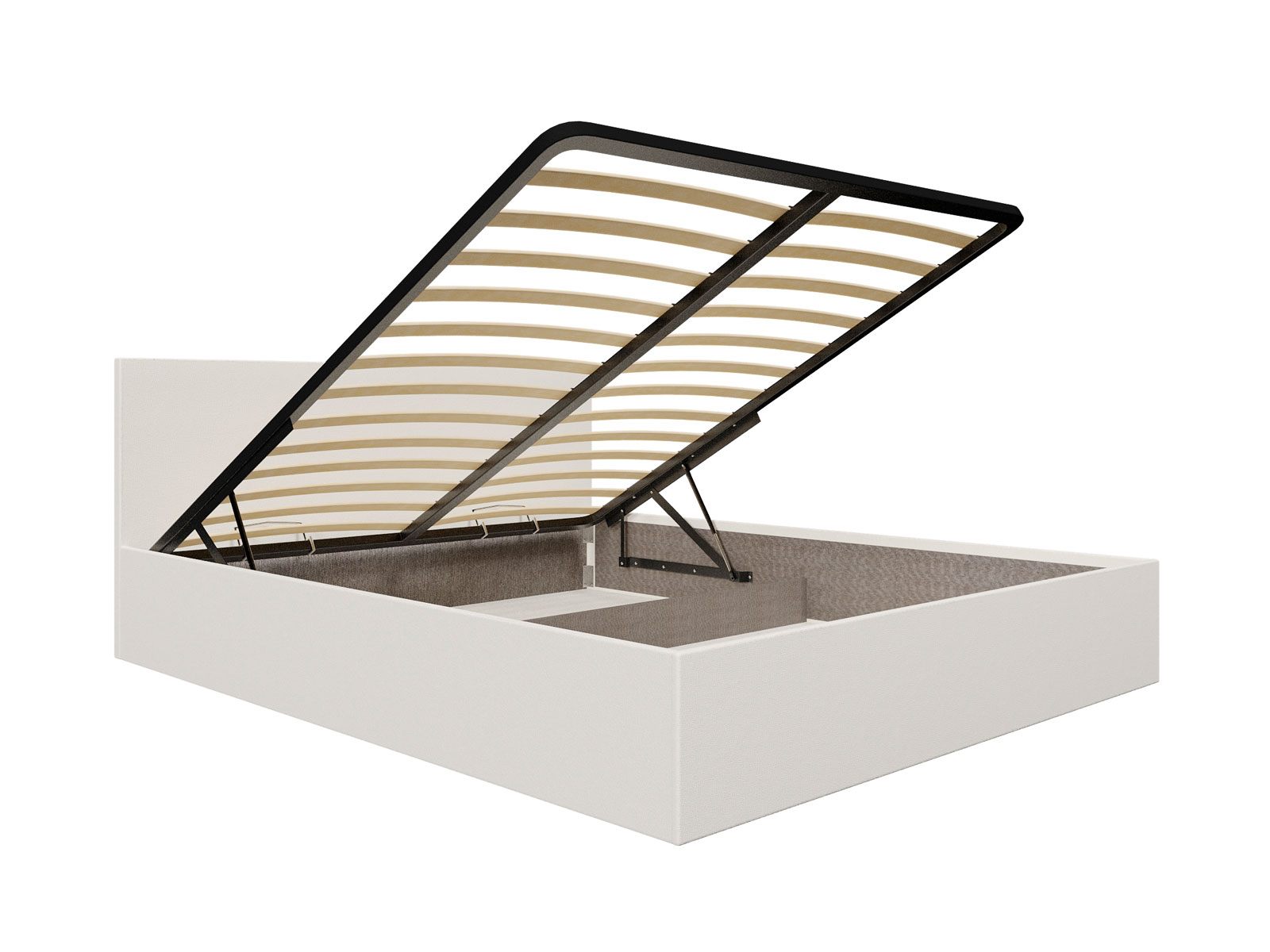 В комплектации с подъемным механизмом кровать имеет вместительный бельевой короб с двумя отделениями.