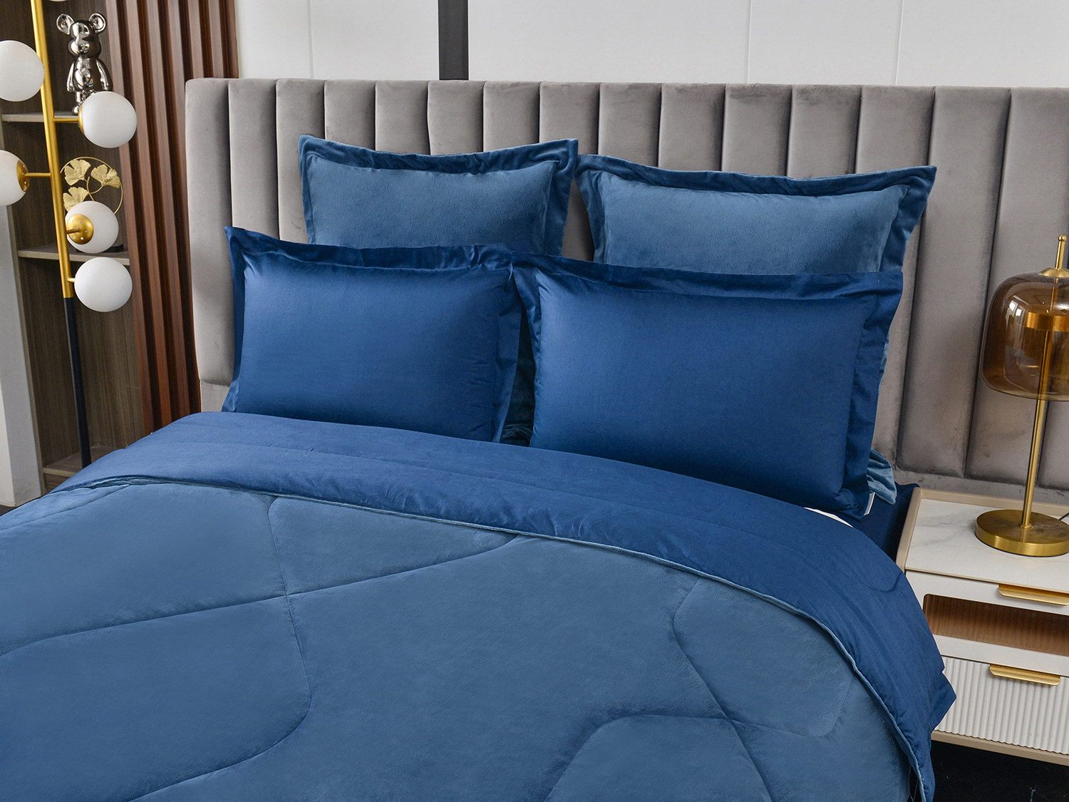 Изготовленный из качественной вискозы и мягкого хлопка трендовых цветов, комплект создаёт приятное ощущение на коже. Его экологичное наполнение из 100% эковолокна обеспечивает гипоаллергенные свойства, подарив вам спокойные и уютные ночи.