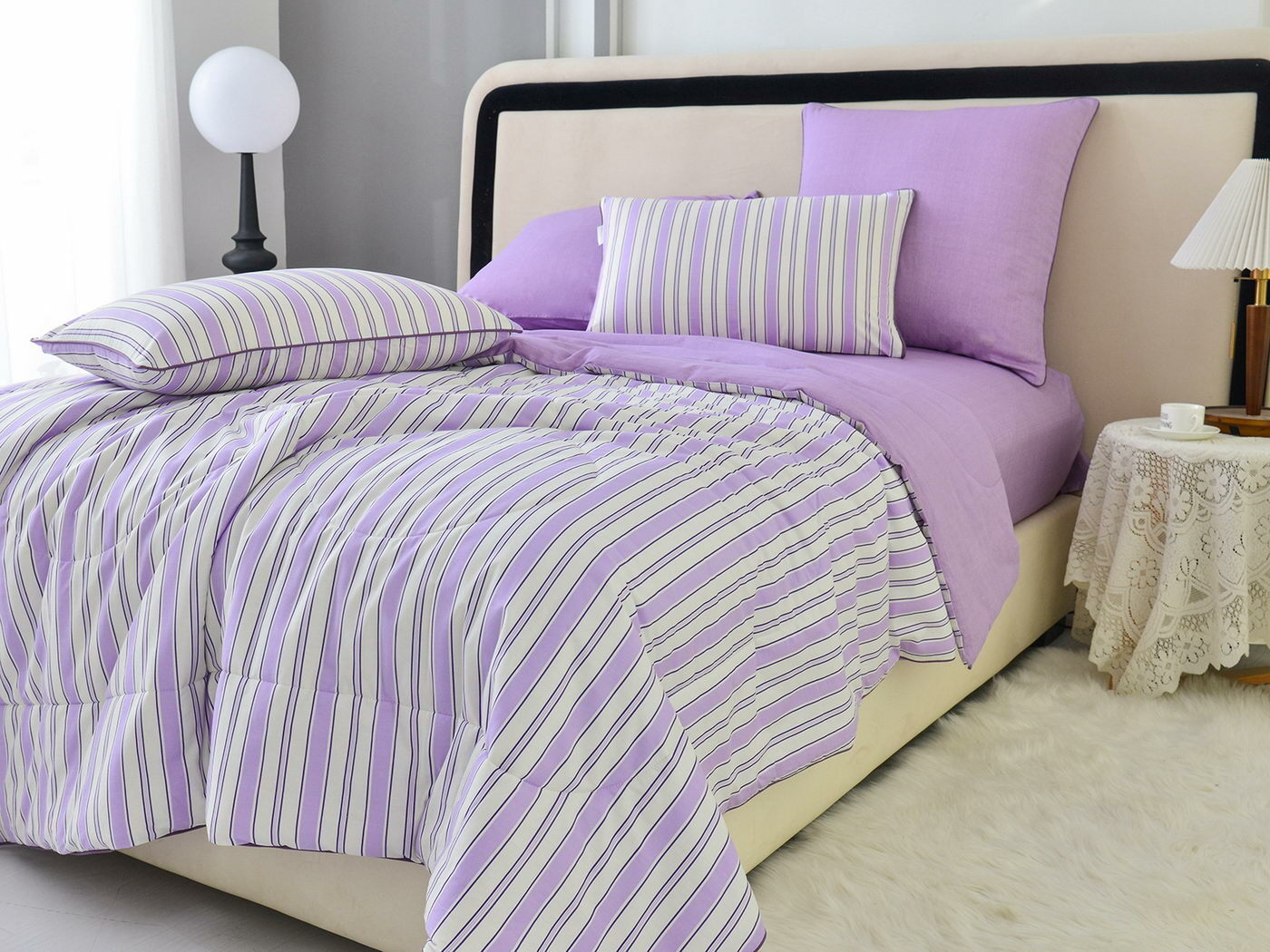 Особенность: двусторонняя модель, наволочки и одеяла декорированы кантом.