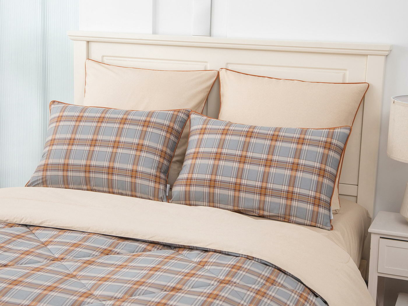 Особенность: двусторонняя модель, наволочки и одеяла декорированы кантом.