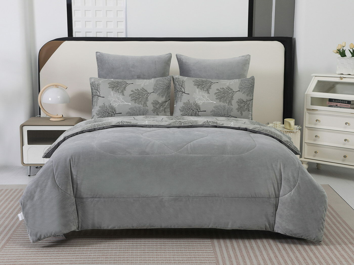 Новая коллекция комплектов «Роберто» с одеялом из однотонного велюра и принтованного сатина.