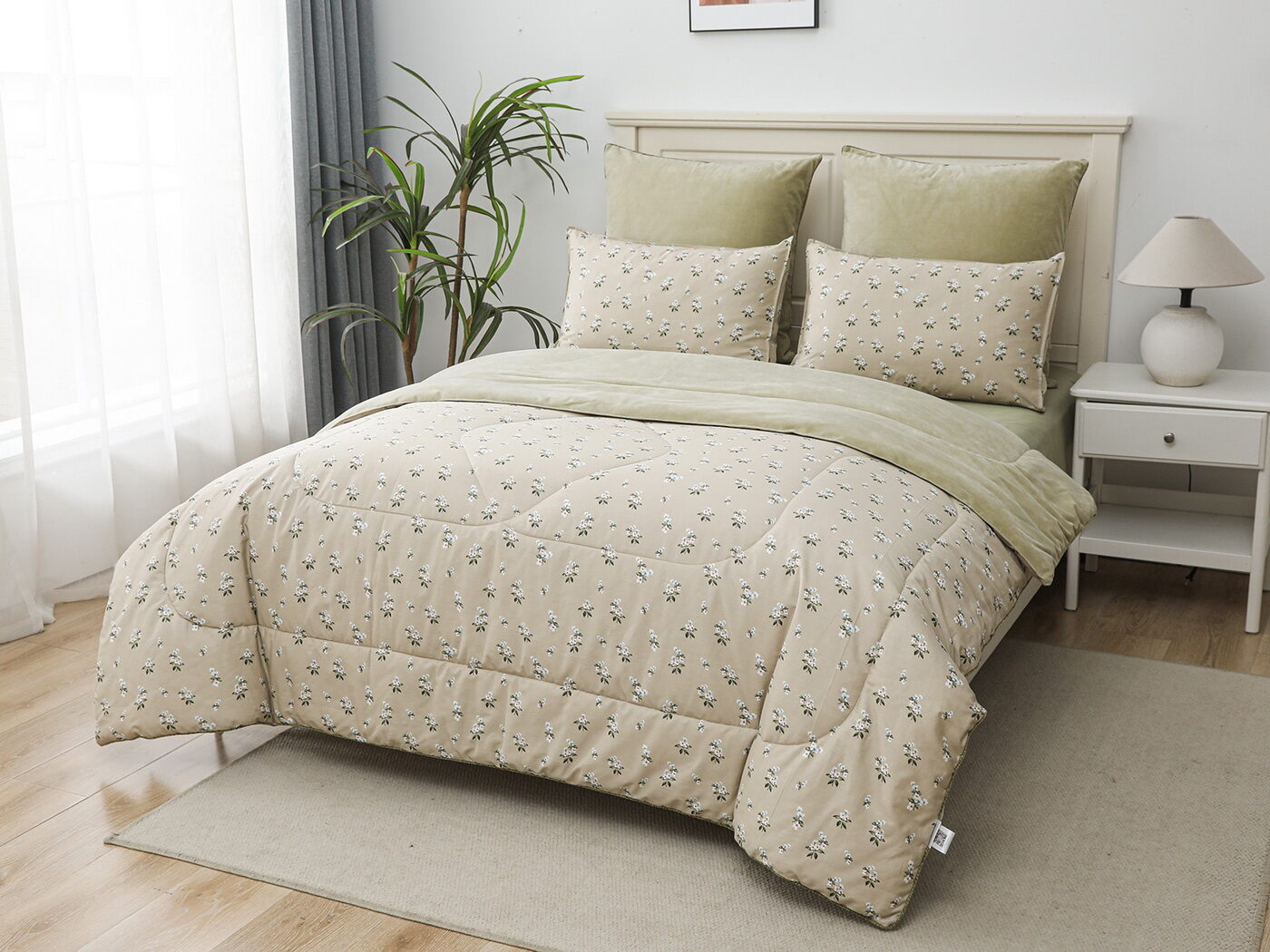 Обратная сторона одеяла – принтованный сатин натуральный хлопковый материал. На ощупь нежная и шелковистая, при этом комфортная и прочная ткань.
