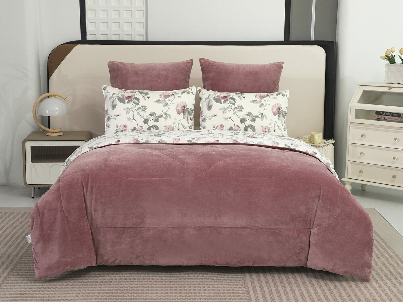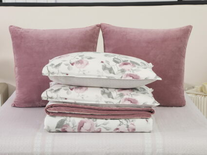 Новая коллекция комплектов «Роберто» с одеялом из однотонного велюра и принтованного сатина.