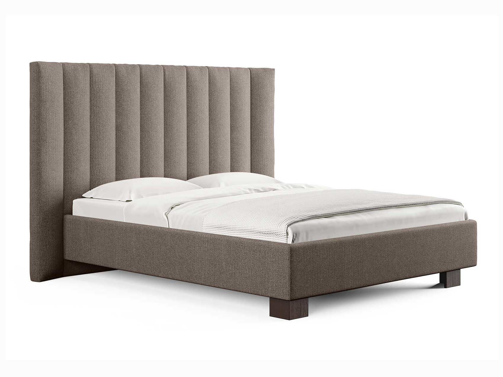 Кровать соответствует самым модным тенденциям и прекрасно впишется в современный интерьер просторной спальни. Высокая спинка с мягкими элементами выглядит эффектно. Поворотный механизм боковых элементов изголовья меняет форму, создавая более уютную атмосферу в спальне. Увеличенная прочность кровати достигается за счет металлического каркаса по периметру. Массивные ножки, выполнены из бука цвета венге. Расстояние от пола до царг способствует легкой уборке под кроватью, в том числе роботом – пылесосом.