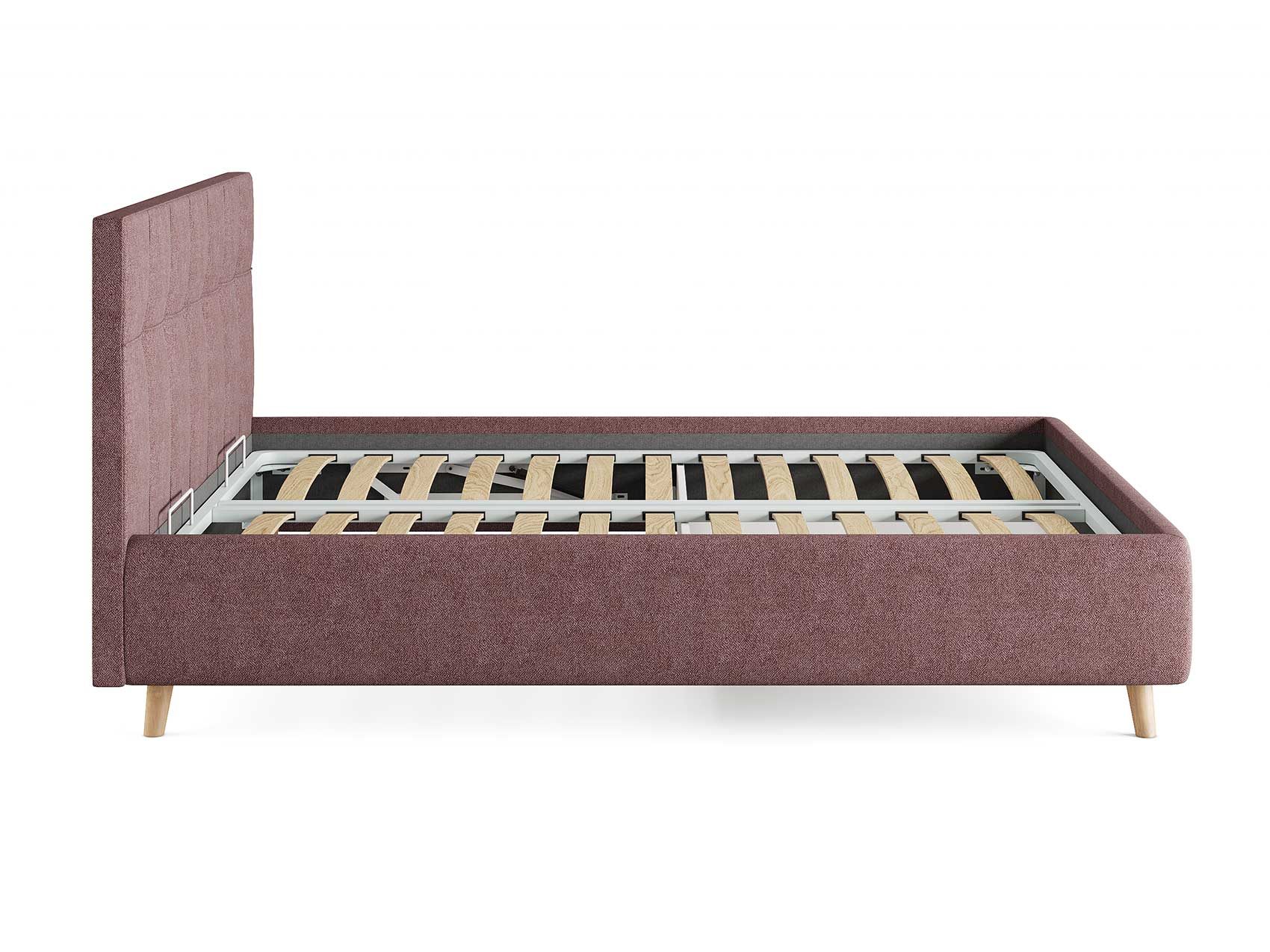 Кровать комплектуется металлическим основанием (без опор), которое имеет 13 рядов встроенных березовых ламелий на каждое спальное место, обеспечивая равномерное распределение нагрузки.