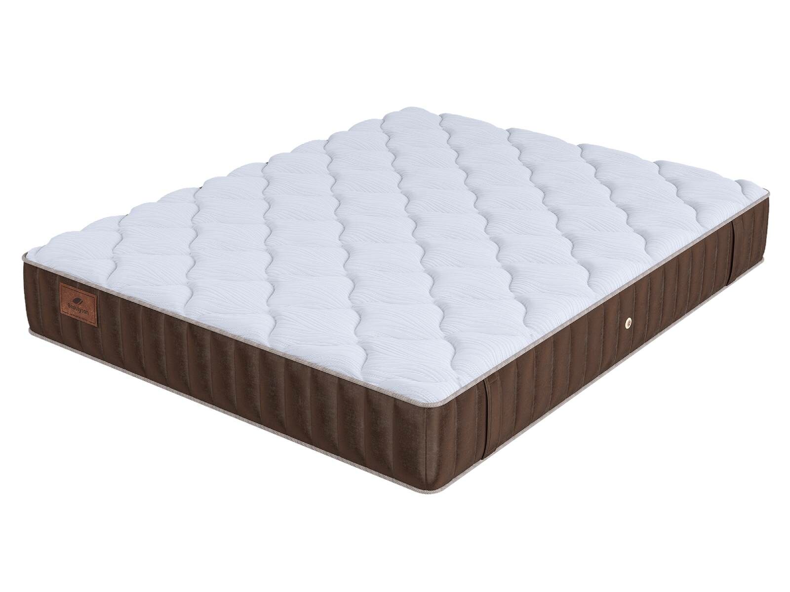 Хлопковая трикотажная ткань чехла обеспечивает комфорт и обладает отличной воздухопроницаемостью. Высокообъемная стежка с использованием холлофайбера (600гр.) подарит дополнительный комфорт спальному месту. Изысканный бурлет из мягкого велюра красивого бежевого цвета придает матрасу роскошный внешний вид и подчеркивает его премиальный статус. Каждая модель серии LIFE украшена фирменной кожаной биркой BeautySon, подтверждающая исключительность каждого матраса.