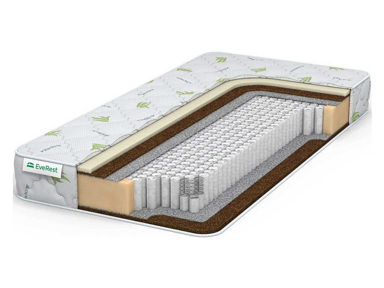 Для обтяжки матраса реализован трикотажный чехол с пропиткой экстрактом Aloe Vera для антибактериального эффекта.