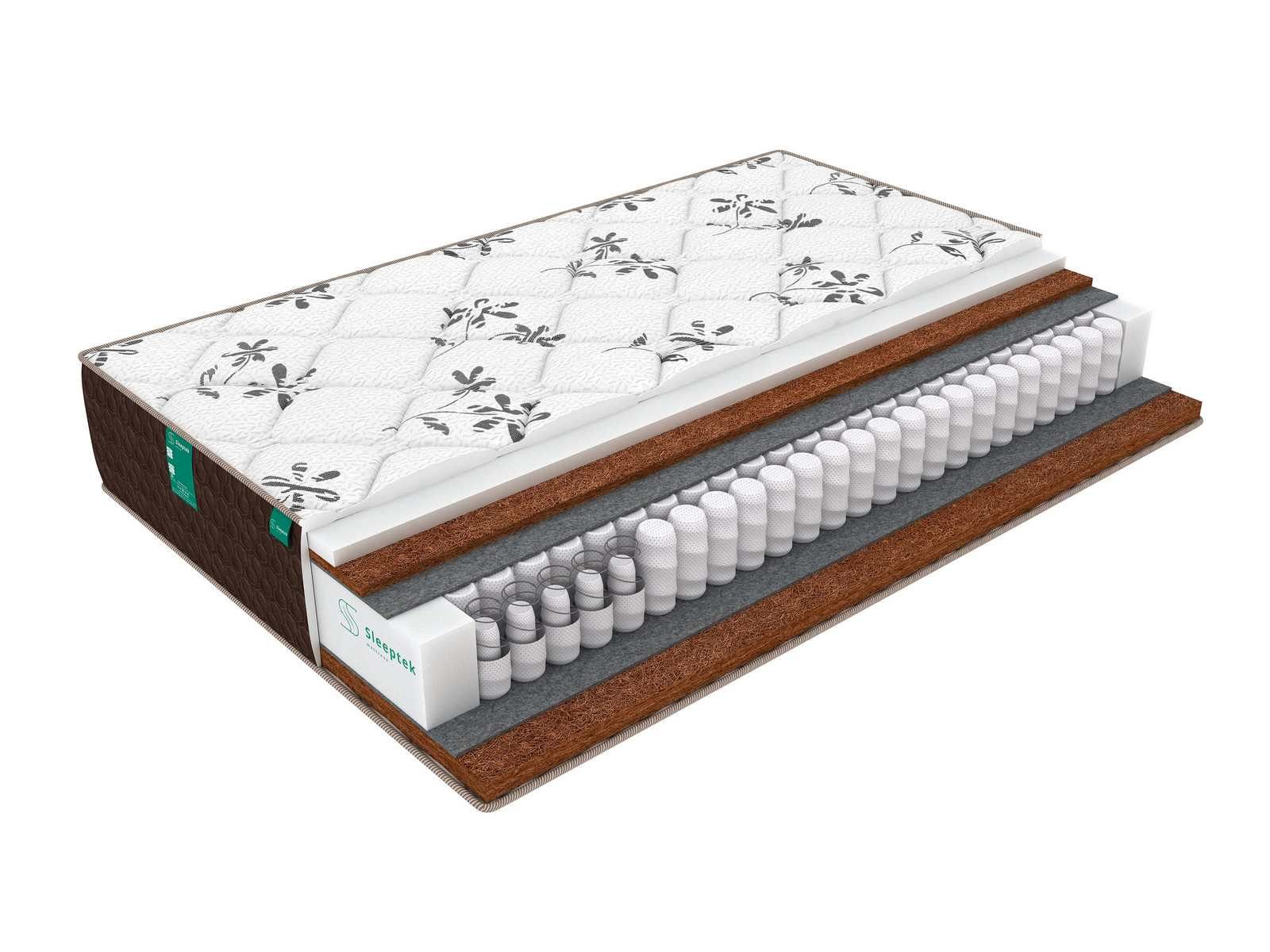 Жесткость сторон у этого матраса различна. Одна сторона представлена твердой волокнистой койрой кокоса и является жесткой. Вторая сторона – это комбинация койры и ортопедической пены, эта сторона умеренно мягкая.