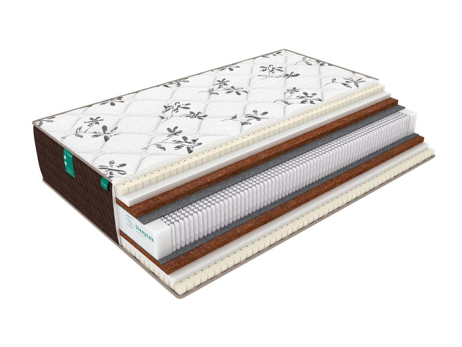 Койра – жесткий волокнистый материал – усиливает ортопедические качества пружинного блока и улучшает состояние позвоночника. Натуральный и искусственный латекс способствуют оптимальному кровообращению, придают матрасу комфорт и делают сон здоровым и крепким.