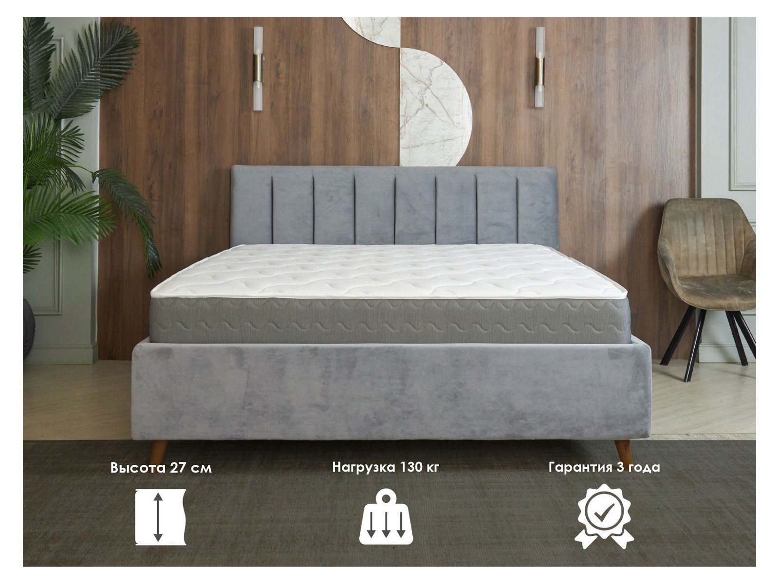 Матрас даёт возможность выбора между средней и высокой жёсткостью, сохраняя выраженные ортопедические свойства и комфорт натуральных наполнителей.