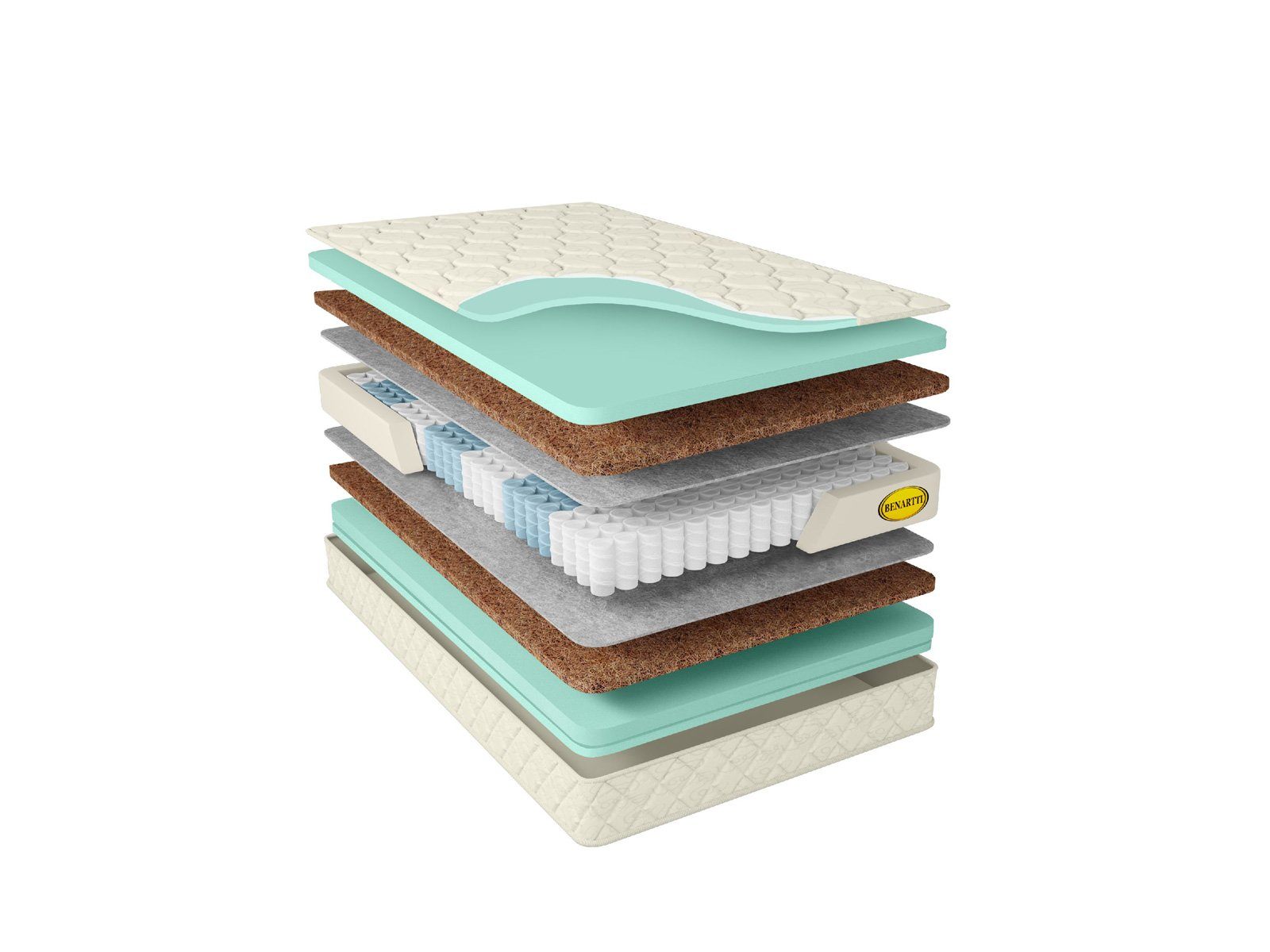Внутри матрас обеспечен крепким пружинным блоком. TFK содержит сразу 512 пружин на спальное место и передаёт качественную точечную поддержку для спины. Независимое функционирование спиралей гарантирует главное качество, необходимое для здоровья позвоночника – ортопедический эффект.