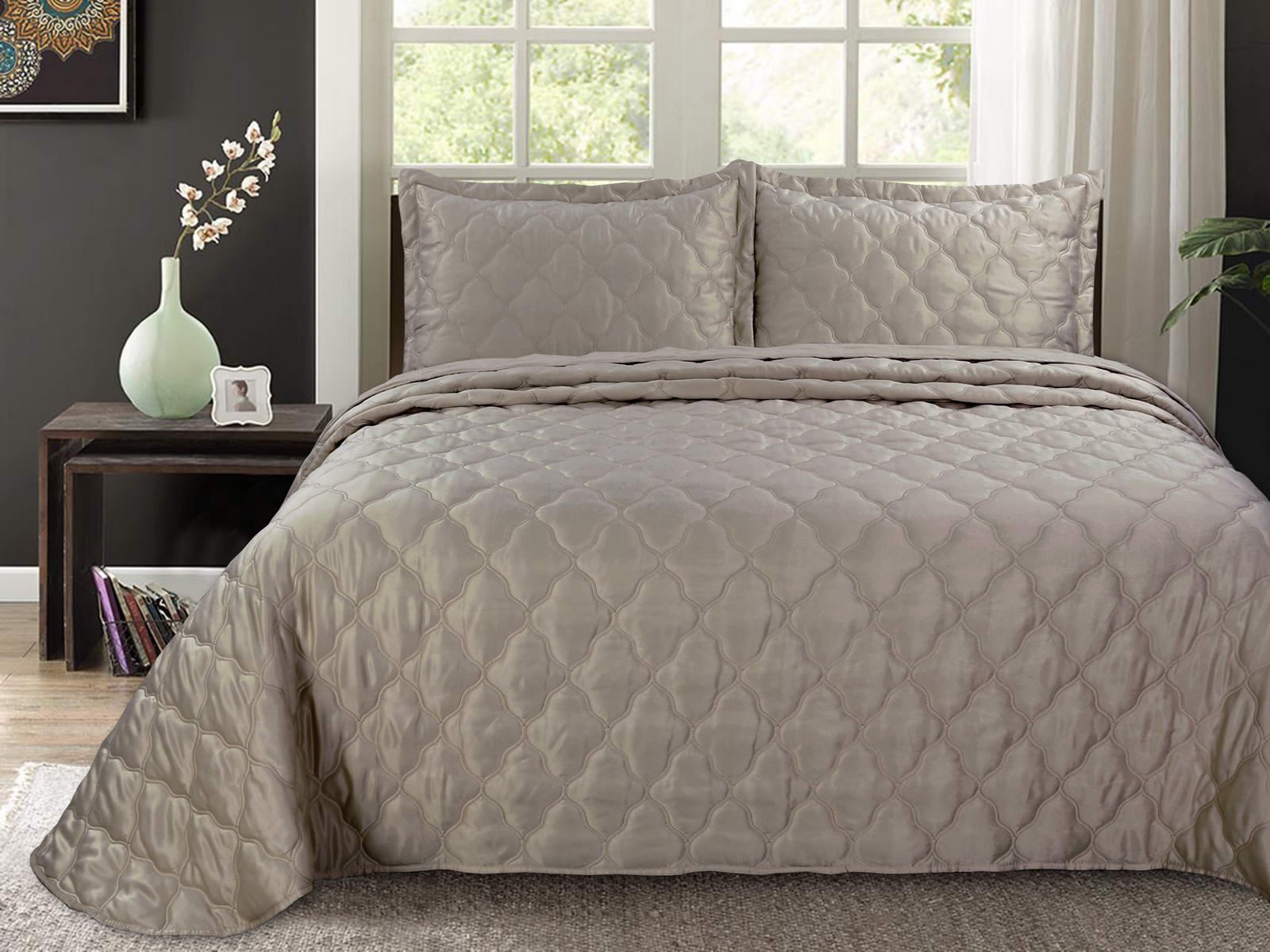В комплект входят покрывало и одна либо две наволочки (50х70 см) из аналогичного материала в зависимости от размера.